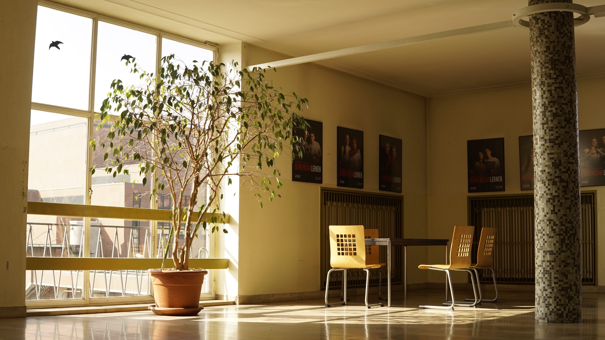 This student area at the Berufsbildene Schule (BBS2) in Kaiserslautern is a great place to take a break from the classroom. Especially when the sun peaks through the glass.
