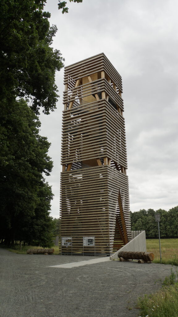 This brand-spanking-new structure stands proud in the middle of the marshlands near Spesbach. Take a break and view the the surroundings after climbing 104 steps to the top.