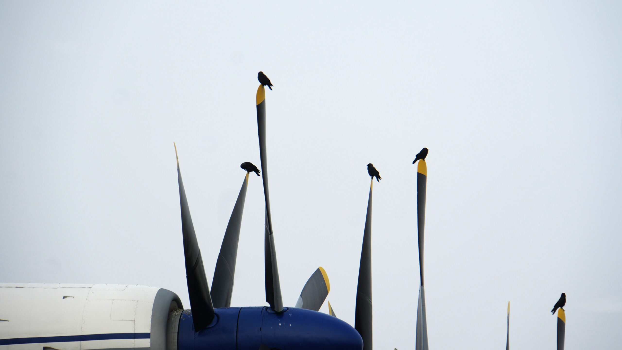There wasn't just a pigeon convention. A murder of crows were having their own on a neighboring aircraft