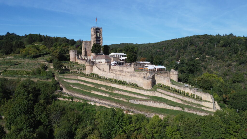 Another castle in Rheinland-Pfalz that was blown up either by the French or during the Peasants War. But don’t worry about that. All you care about is having a place to rest your weary legs and enjoy the view. Thirsty? Grab a cold wein schorle while you enjoy the fruits of civilization! The little restaurant also offers food to restore your powered-out muscles.